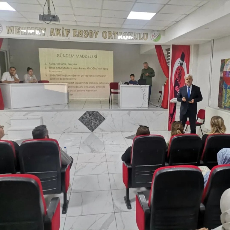 Kurum Müdürümüz sayın Recep ATAOĞLU'nun açılış konuşması sonrasında Rehberlik Hizmetleri Bölüm Başkanımız Ahmet ENGİN'in sunumu ve beraberinde soru cevap etkinliği ile sona erdi.
